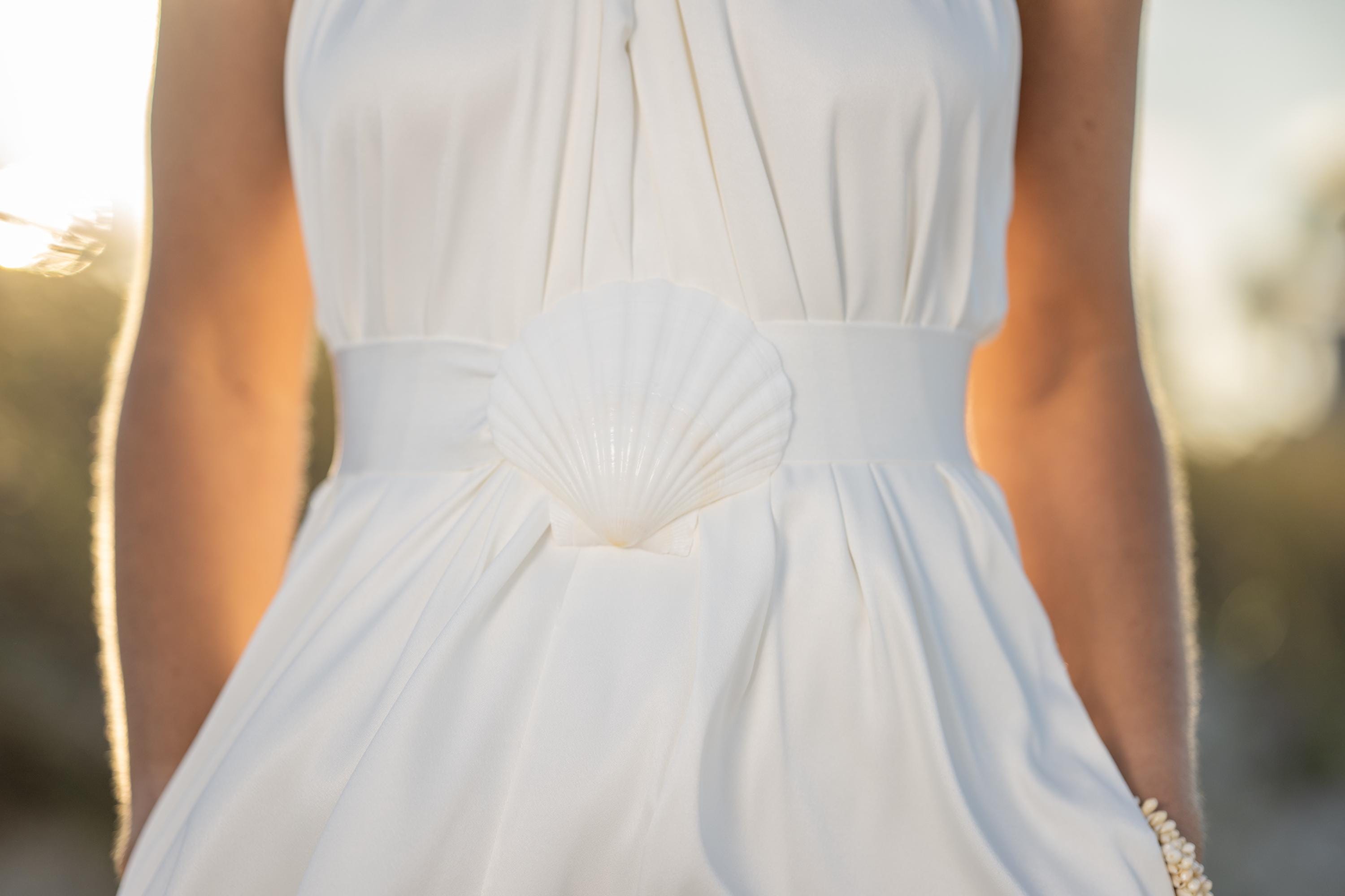 This seashell belt is the perfect accessory to beautifully define your waist and elevate any beach wedding gown. Every belt is custom-made to your specific measurements, ensuring a flawless and comfortable fit for your special day. To make it uniquely yours, you can choose the shell pattern you like most from our natural collection.