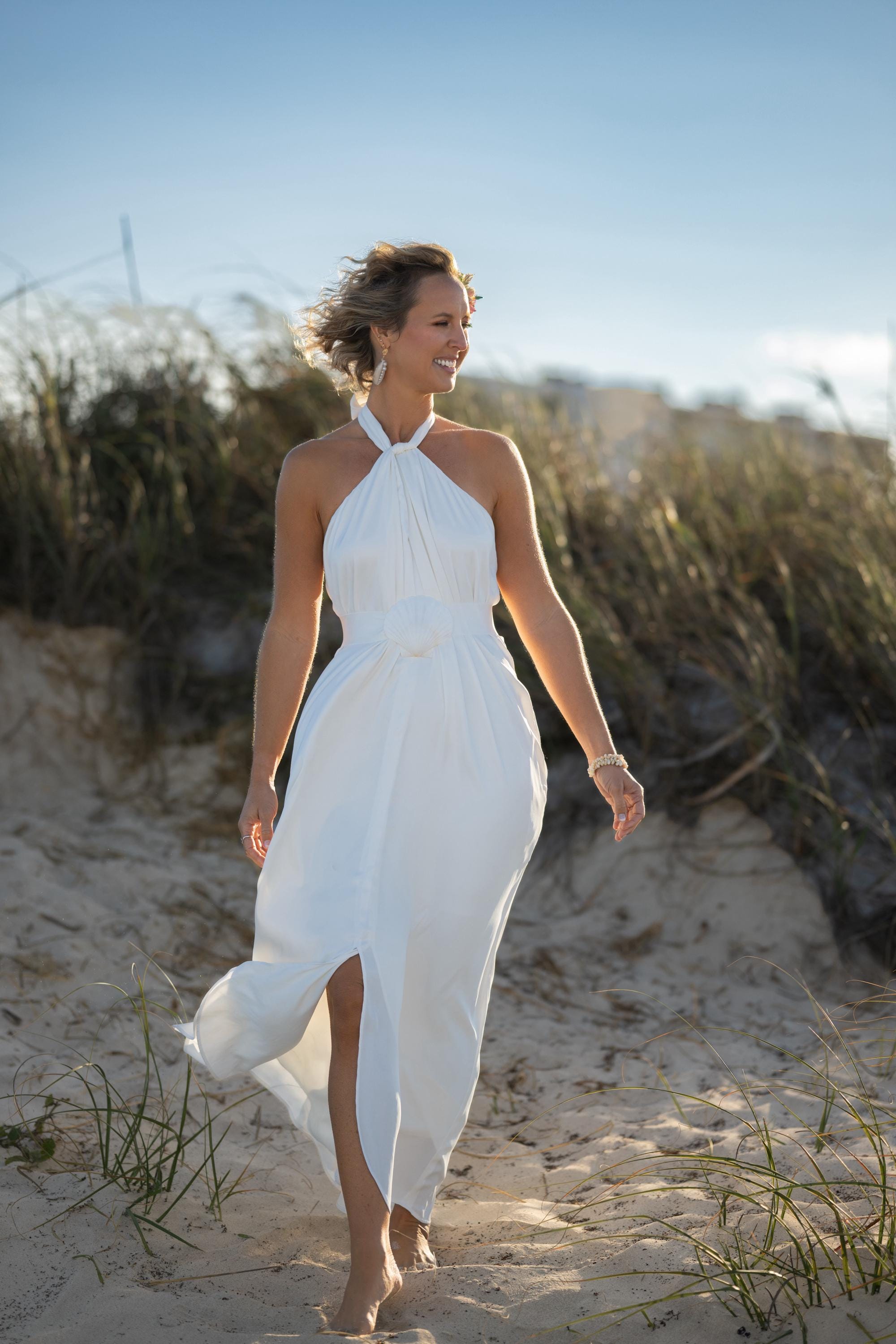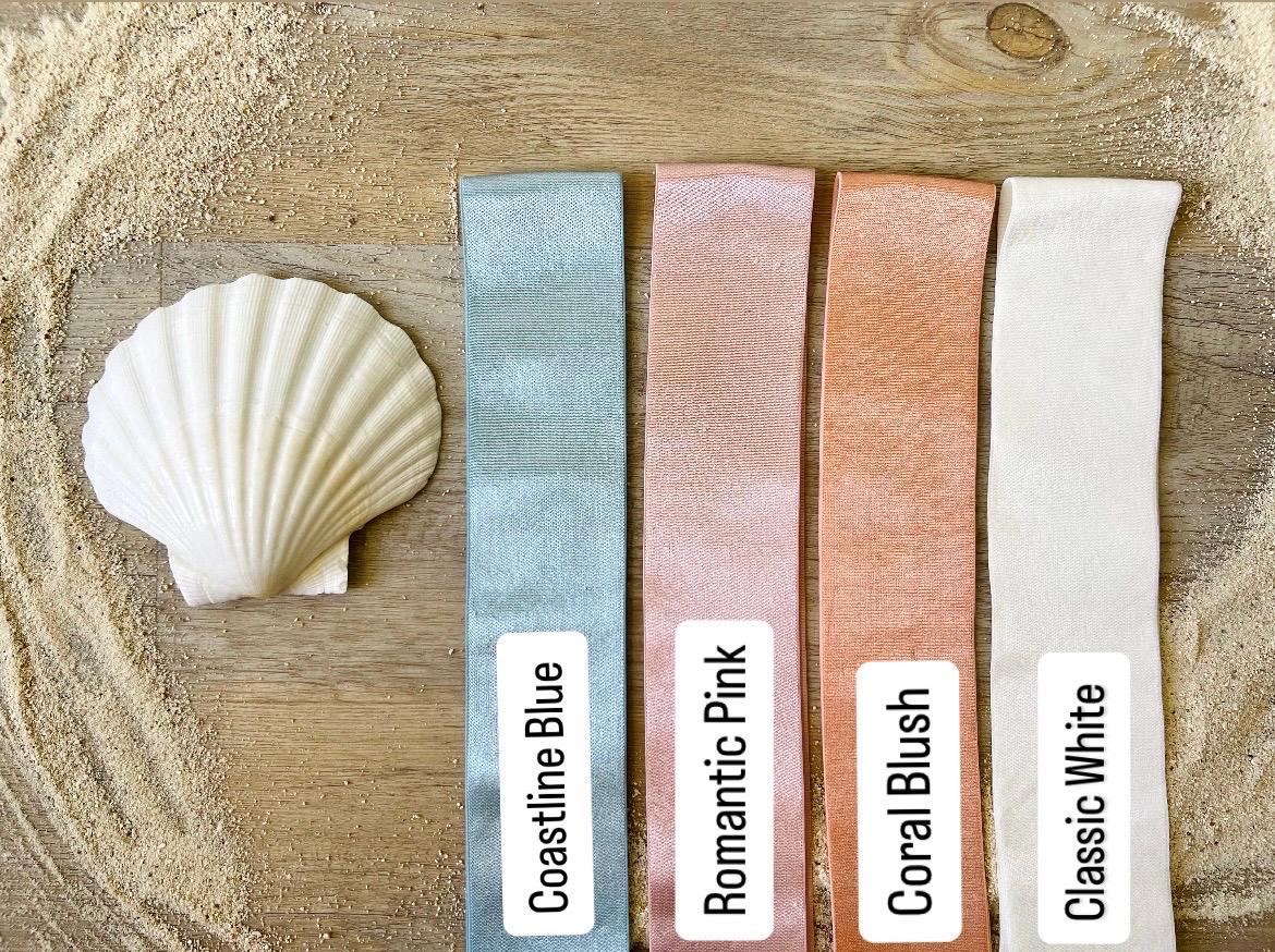 You also have the freedom to choose between a classic white, romantic pink, coral pink or coastline blue stretch sash to perfectly complement your bridal style. Best of all, the sashes are designed to be interchangeable, giving you the flexibility to have different color options if you would like to switch up your look from the ceremony to the reception.